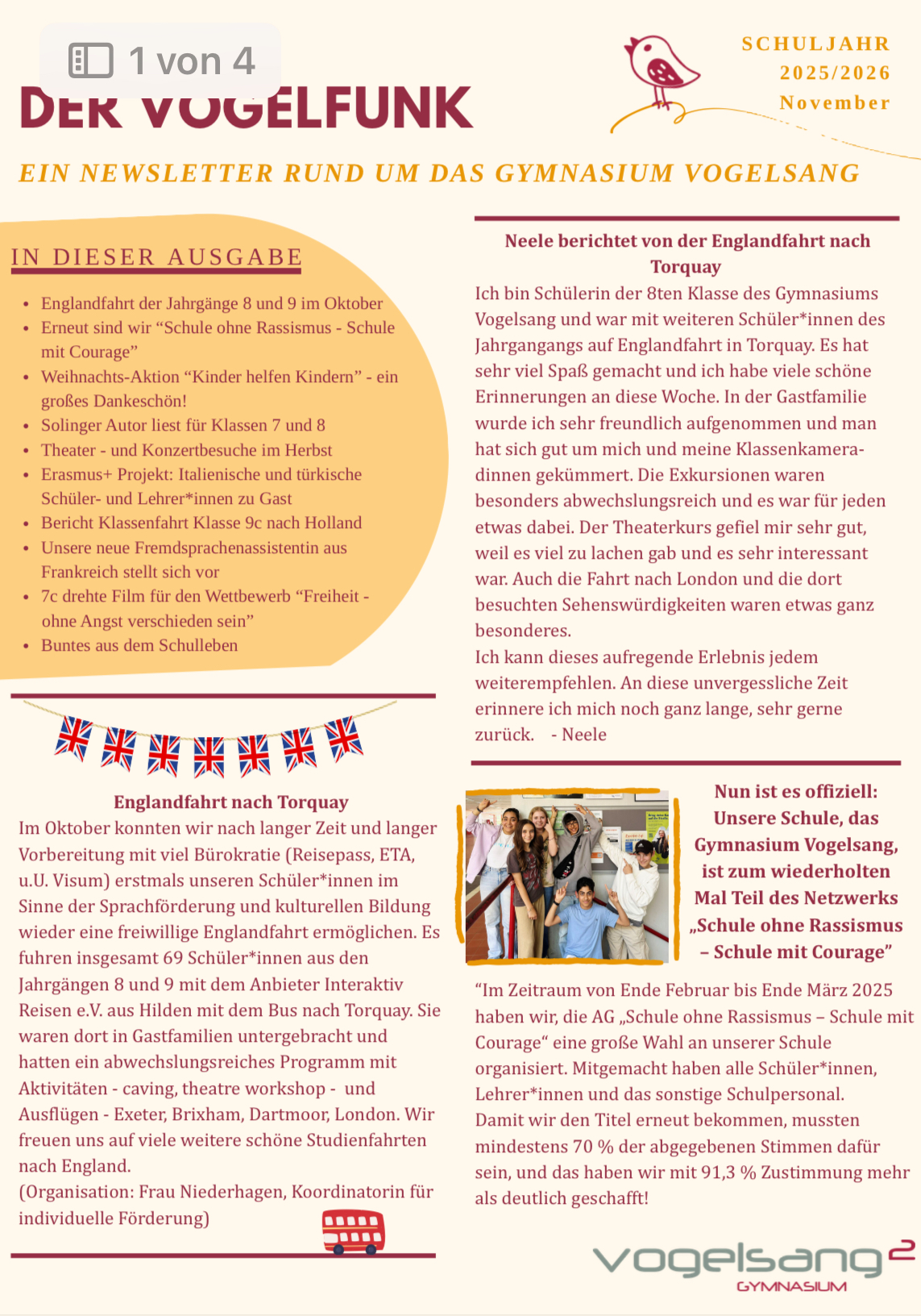 NEU: Gymnasium Vogelsang ist Erasmus+ Schule