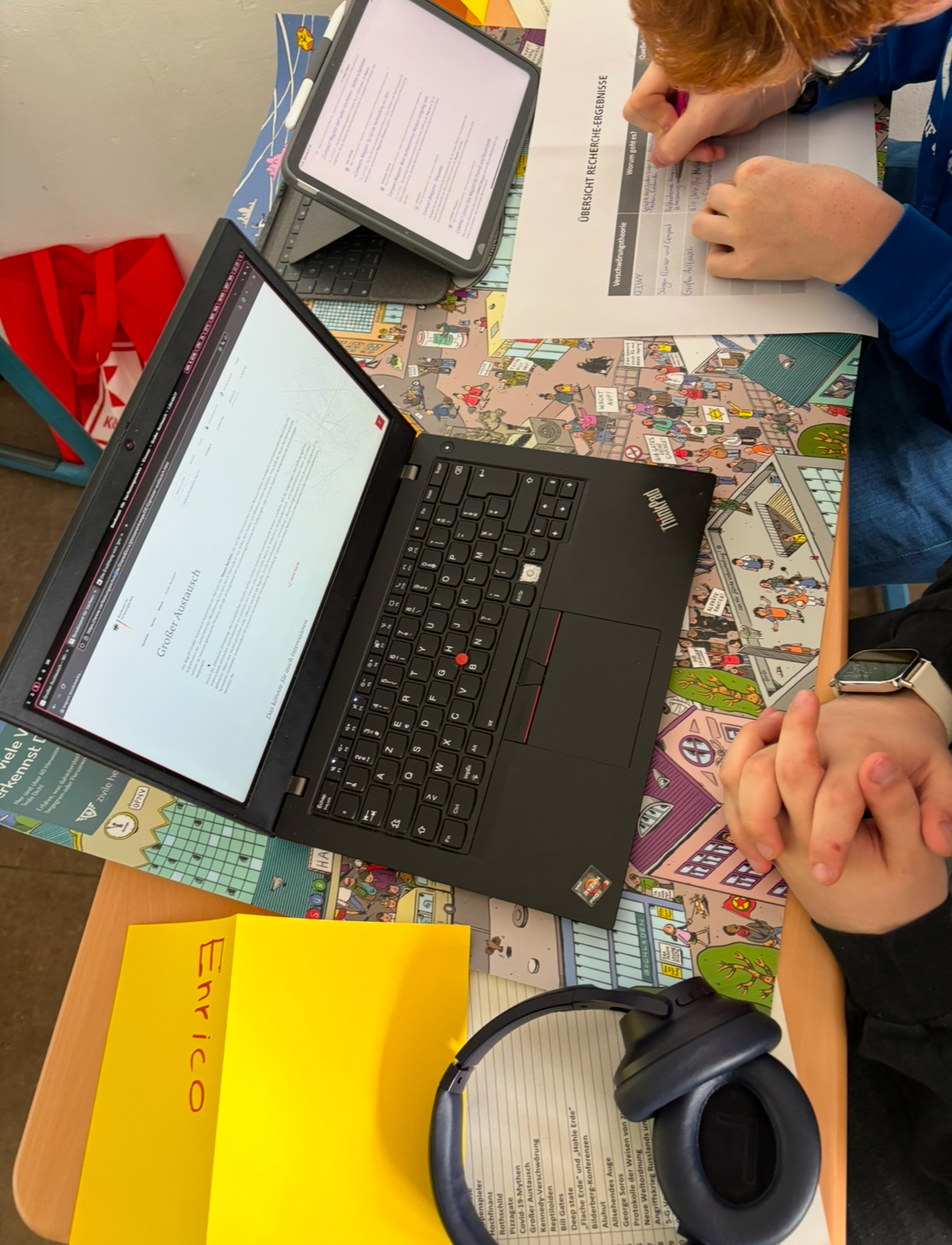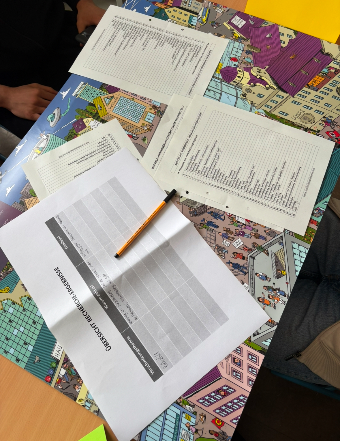 Herr Braun: Wir haben uns einen Überblick verschafft was es für Verschwöhrungsideologien gibt und die Schüler sind dabei selber zu recherchieren über einzelne verschwörungsideologien wo man Informationen dazu findet