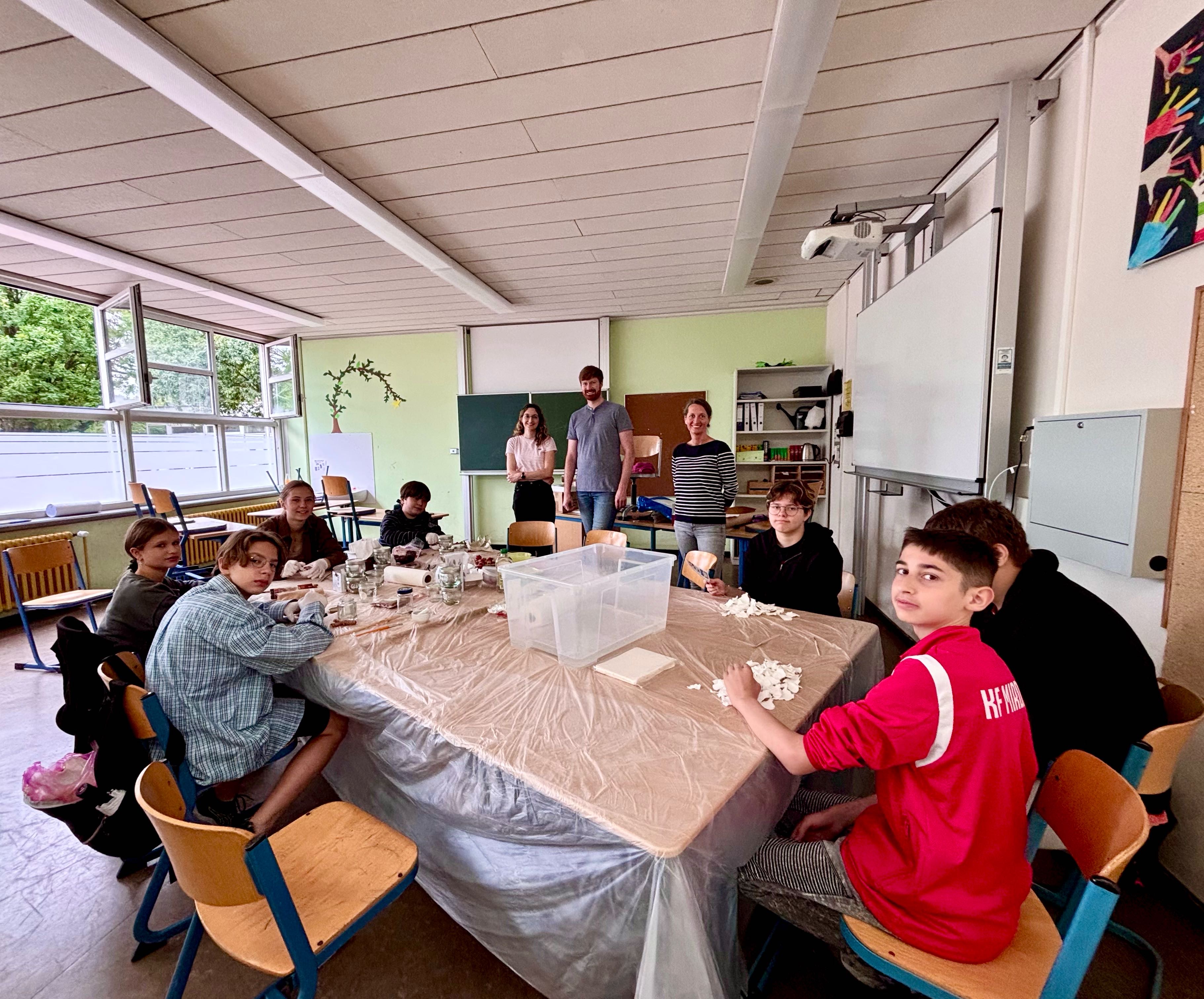 Ein weiteres Highlight war die Herstellung von eigenem Papier. Die Teilnehmenden lernten, wie man aus alten Papierfasern neue Blätter schöpft - ein kreativer und nachhaltiger Prozess, der viel Freude bereitete.